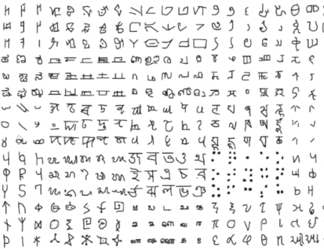 - 20 alphabets are randomly selected from the background set of the Omniglot Dataset. Each alphabet is used for a distinct task, selecting 4 letters/classes, 5 images per class for training.